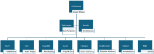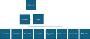 Styrelsen består av ordförande, kassör, sekreterare, samt chefer för samtliga sektioner, se organisationsschema nedan.
